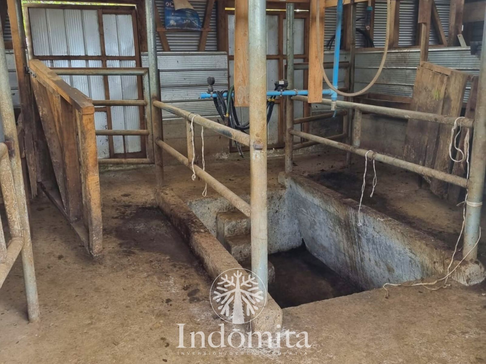 En infraestructura, incluye casa principal con 5 dormitorios, sala de estar, living, comedor y cocina, además de casa de cuidador. Posee lechería habilitada para 4 vacas, corral y dos galpones: uno de 12 x 17 metros y otro de 12 x 20 metros, adecuados para almacenamiento, maquinaria o manejo de animales.
